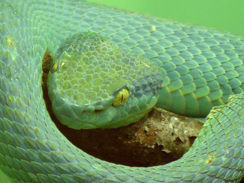 A snake that has heat-sensing pits is venomous. What are heat sensing pits? They are holes in the snakes’ faces that are called pit organs. These organs have a membrane that has heat sensitive receptors that can detect infrared radiation from warm bodies up to one meter away. (Just over 3′) As a result, these snakes can detect prey even in the dark. They are known the venomous snakes known as “PIT VIPERS.”